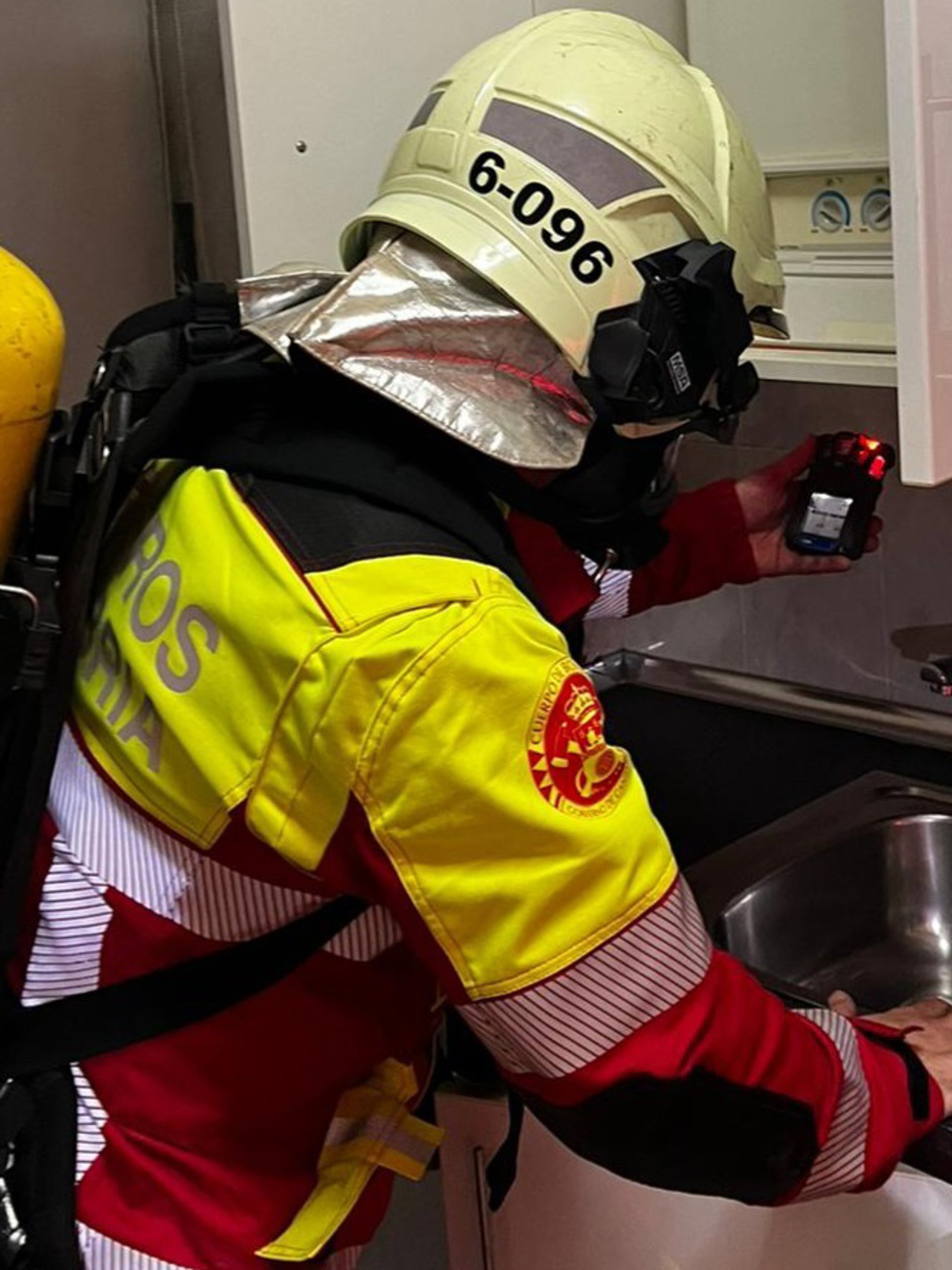 A su llegada los bomberos del 112 han procedido a efectuar mediciones con explosímetro, registrándose valores positivos de concentración de monóxido de carbono. Se ha cortado el suministro de gas y precintado la instalación.