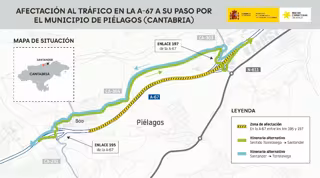 Por ello, para garantizar la seguridad de los trabajadores y usuarios, se habilitarán itinerarios alternativos, debidamente señalizados, en el kilómetro 187 de la autovía: desvío y reincorporación por el enlace 187; y entre el kilómetro 195 y el 197, con la alternativa de las autonómicas CA-231 y CA-304.