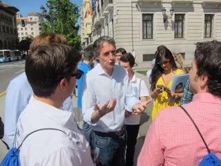 El candidato ha paseado con los jóvenes por el centro de Santander y les ha mostrado los proyectos que están en marcha en la ciudad como el Centro Botín, la apertura de la sede asociada al Reina Sofía y otros elementos del Anillo Cultural.