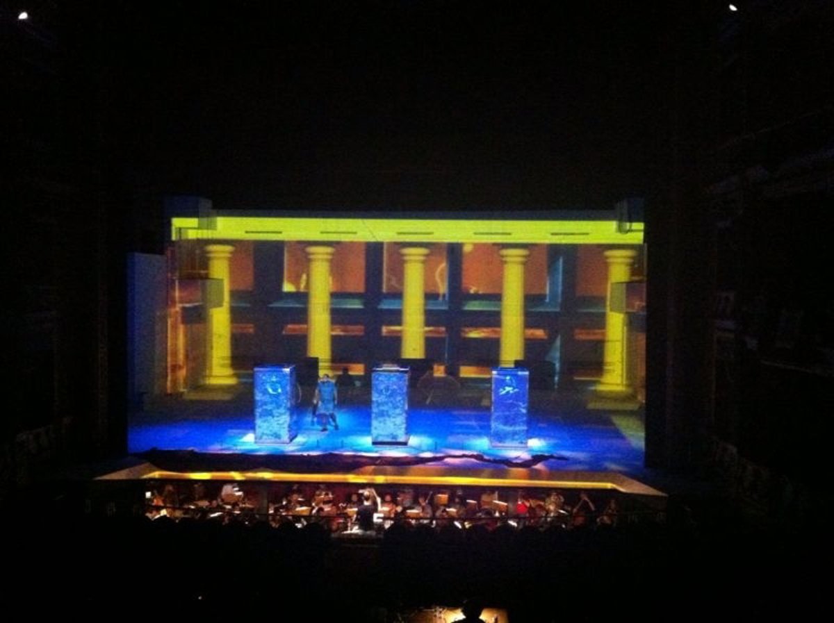 El video-mapping consiste en la proyección de imágenes tridimensionales, eliminando por completo la construcción y montaje de una escenografía convencional, lo que posibilita un importante ahorro a la vez que crea imágenes que envuelven todo el escenario, así como cantantes e incluso público.