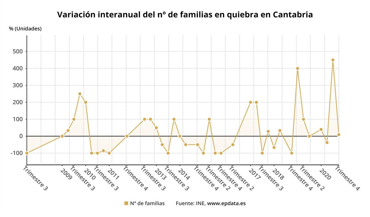 Variación interanual de las familias en quiebra en Cantabria - EPDATA