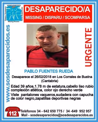 El desparecido es Pablo Fuentes Rueda, de 1,78 metros de estatura, cabello liso rubio y complexión atlética.