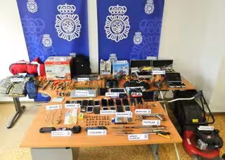 Así, el 18 de agosto los policías procedieron a la detención de los cuatro sospechosos y posteriormente registraron la vivienda, donde incautaron 34 papelinas de cocaína junto con otros efectos relacionados con el tráfico de estupefacientes, dinero, joyas, variedad de armas blancas y punzantes, una pistola del calibre 22 y otra de aire comprimido junto con munición, diversos dispositivos electrónicos de todo tipo junto con multitud de teléfonos móviles y otros efectos relacionados directamente con los robos con fuerza de los últimos meses como herramientas y utensilios de obra.