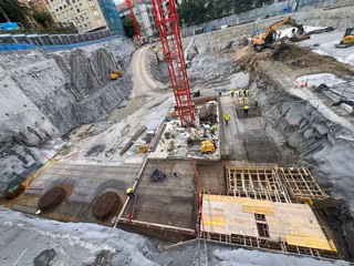 Estas cimentaciones están formadas por "grandes estructuras de hormigón armado que proporcionarán una base sólida y estable" para la posterior construcción de la estructura, y que siguen, a día de hoy, en plena fase de ejecución mientras se continúa con las ultimas perforaciones del segundo sótano.