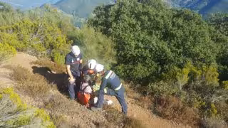 La mujer ha sido atendida en un primer momento por un médico de una prueba deportiva que se desarrollaba en las inmediaciones del lugar del accidente, al que se han unido los bomberos. Estos últimos, que acompañaban a la herida a la llegada del helicóptero, han asistido a la aeronave para facilitar la operación de descenso del técnico de rescate y el médico, y garantizar la seguridad de la afectada.