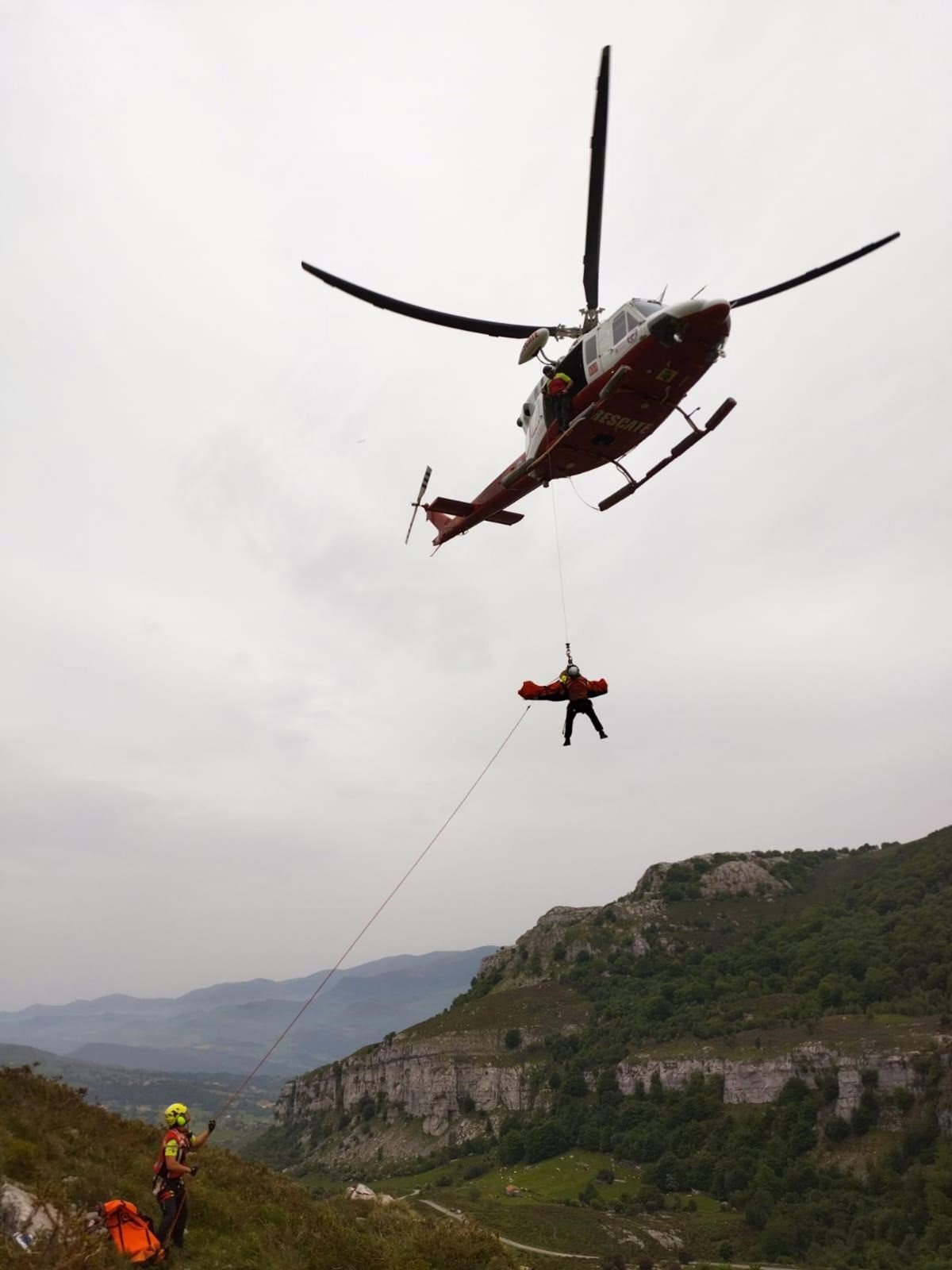 El equipo de intervención de Protección Civil de Cantabria y su helicóptero de rescate medicalizado ha evacuado esta tarde a un vecino de Laredo de 55 años que se encontraba indispuesto y no podía continuar la marcha por el entorno de los laberintos del Asón.