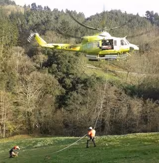 Los bomberos han montado una línea de vida para poder vadear el río y alcanzar la zona seca en la que se encontraba, y han porteado a la víctima por un desnivel hasta un área más abierta y accesible, en la que han tomado tierra un rescatador y la médico del helicóptero del Ejecutivo regional.