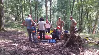 La víctima se encontraba en una zona de monte, por lo que ha sido trasladado en camilla de rescate hasta un lugar con acceso para vehículos, donde esperaba una ambulancia del 061 que le ha llevado hasta el Hospital de Sierrallana.