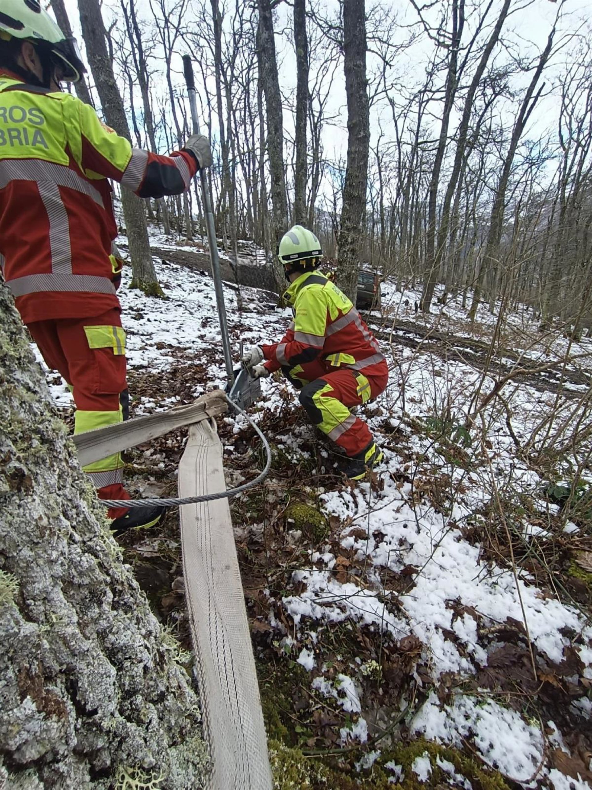 Los bomberos del Gobierno de Cantabria han evacuado a los tres ocupantes de un turismo que se salió de una pista de la localidad de Bejes, en el municipio de Cillorigo de Liébana.