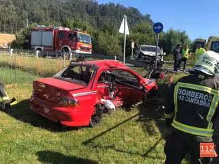 Los bomberos han tenido que excarcelar al copiloto de un turismo que quedó atrapado en un turismo tras una colisión contra una furgoneta en la rotonda de acceso al polígono de Barros (Los Corrales de Buelna), en la carretera nacional N-611, que se ha saldado con tres heridos.