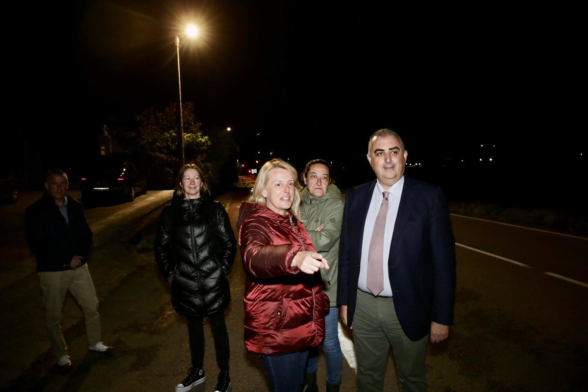 El consejero de Fomento, Roberto Media, y la alcaldesa de Entramabasaguas, María Jesús Susino, con los doce nuevos puntos de luz entre Navajeda y La Cavada - GOBEIRNO DE CANTABRIA/ NACHO ROMERO