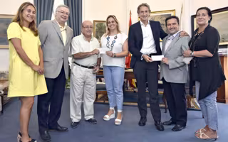 El alcalde de Santander, Íñigo de la Serna, y la directora general de Cultura del Gobierno de Cantabria, Marina Bolado, han entregado esta recaudación solidaria acompañados de Juan Antonio Prieto, presidente de la Asociación Cultural 'Proa', organizadora de la gala.