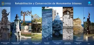 Los monumentos restaurados dentro del proyecto que se acaba de adjudicar provisionalmente a la Fundación Santa María La Real son el monumento a la Asunción de la Virgen, en la plaza de Atarazadas; el grupo dedicado a Augusto González Linares, en la Avenida de Reina Victoria; el reloj solar y la bola del mundo de los jardines de Piquío; y el monumento a la Libertad de Expresión, en la península de la Magdalena.