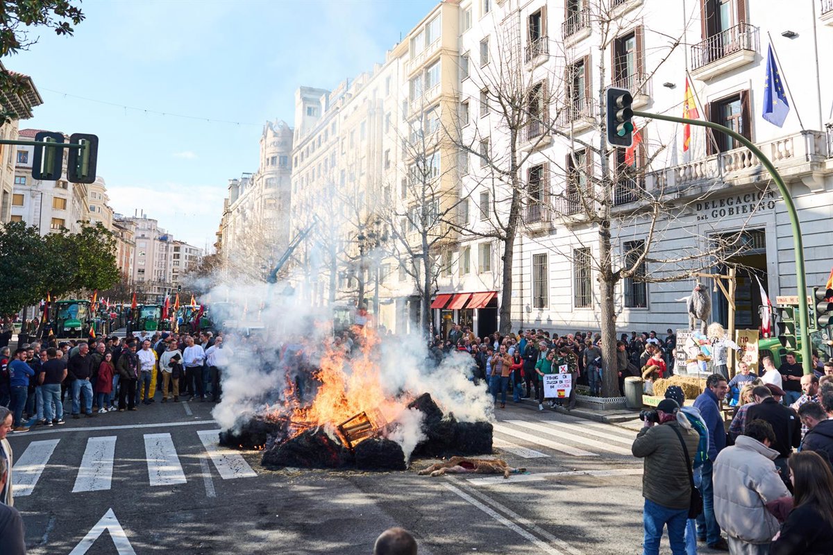 Fogata a las puertas de la Delegación del Gobierno durante la tractorada en Santander - Juanma Serrano - Europa Press
