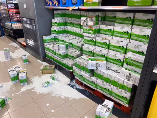 Los ganaderos de Cantabria han rodeado e irrumpido este viernes en varios centros comerciales de Camargo, Colindres y Torrelavega para señalar con pegatinas de 'práctica ideal' productos de empresas "que no cumplen con la normativa" y "pagan al sector por debajo de los precios de producción". Además, en estas protestas han derramado algunos bricks de leche de los lineales.