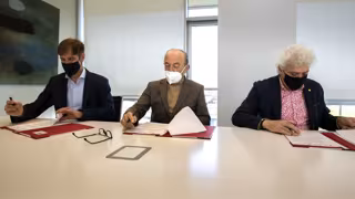 El consejero de Industria, Javier López Marcano, firma con el presidente de CEOE, Enrique Conde, y el de la asociación de Hostelería, Ángel Cuevas, la petición al Gobierno Central - GOBIERNO DE CANTABRIA