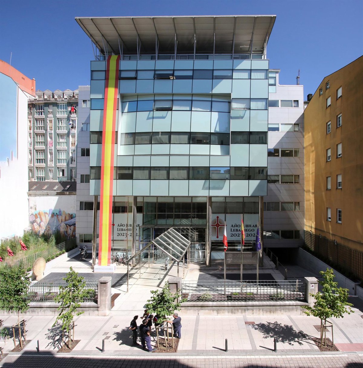 Bandera de España desplegada en la fachada de la sede del Gobierno de Cantabria. - GOBIERNO DE CANTABRIA