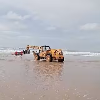 Un vehículo pesado saca del mar, en la playa de Oyambre, al turismo que quedó encallado - 112
