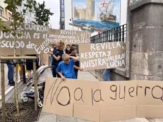 Han sido en torno a una veintena de personas las que han sostenido carteles con las inscripciones "No a la guerra", "Revilla, somos ucranianos y no vamos a rendirnos", "Revilla, respeta y valora nuestra lucha" y "¡Recuerda! Ucrania es el escudo de Europa".