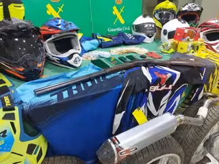 En los registros se encontraron efectos sustraídos que aún no habían podido vender, como material nuevo para la seguridad en el motocross (cascos, botas, gafas) o ruedas de turismos; y se intervino una escopeta.