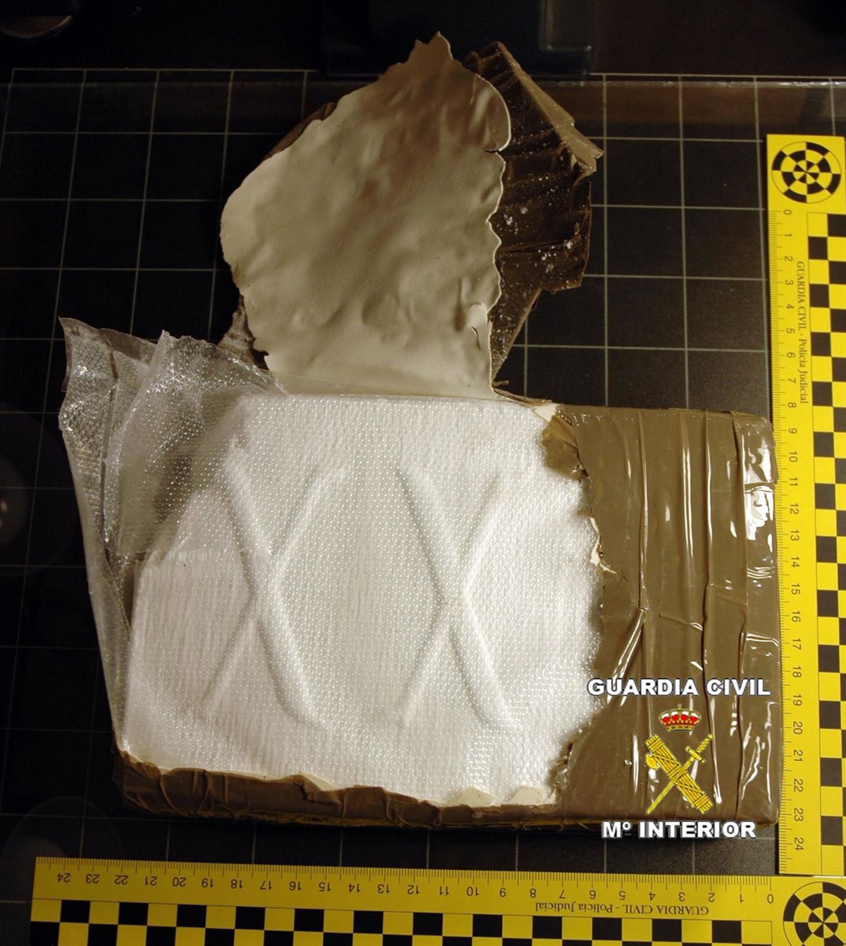 En el paquete se encontraron 1.042 gramos de cocaína, de la que se podía haber obtenido más de 5.200 dosis, según cálculos de la Guardia Civil.