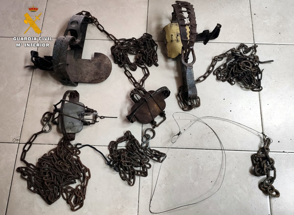 También encontraron otros tres cepos que no estaban abiertos, así como un lazo de caza.