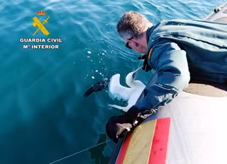 Según ha informado la Benemérita en una nota de prensa, una embarcación del Servicio Marítimo que realizaba la patrulla de vigilancia de costa, observó a un ejemplar de alcatraz aparentemente atrapado en algún tipo de red.
