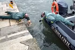 nadando hasta una zona próxima a la rampa del muelle, donde uno de los guardias pudo recogerla y sacarla del agua.