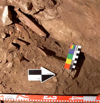 En este caso, han aparecido cubiertos por bloques de piedra, junto a la pared del vestíbulo de la cueva, en la que hay grabados, por lo que las investigaciones tendrán que determinar si existe alguna relación entre las pinturas y el enterramiento.