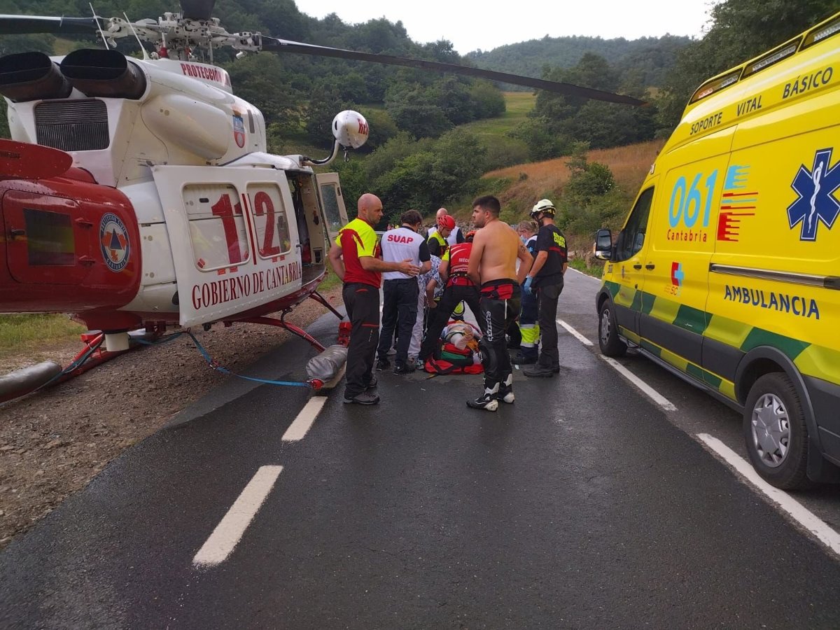 El helicóptero medicalizado del Gobierno de Cantabria ha acudido este sábado a Vega de Liebana para auxiliar a un joven de 33 años y vecino de Jaen que ha tenido un accidente de moto
