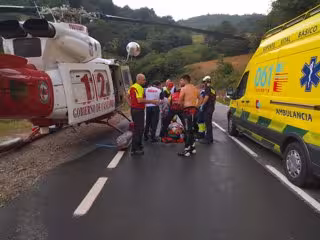 El accidente ha tenido lugar en la N-621, donde el motorista ha chocado contra el guardarrail y ha sufrido una fractura de fémur. El equipo de la aeronave le ha atendido en colaboración de los bomberos del Servicio de Emergencias 112 del parque de Liébana.