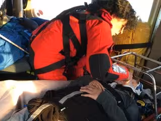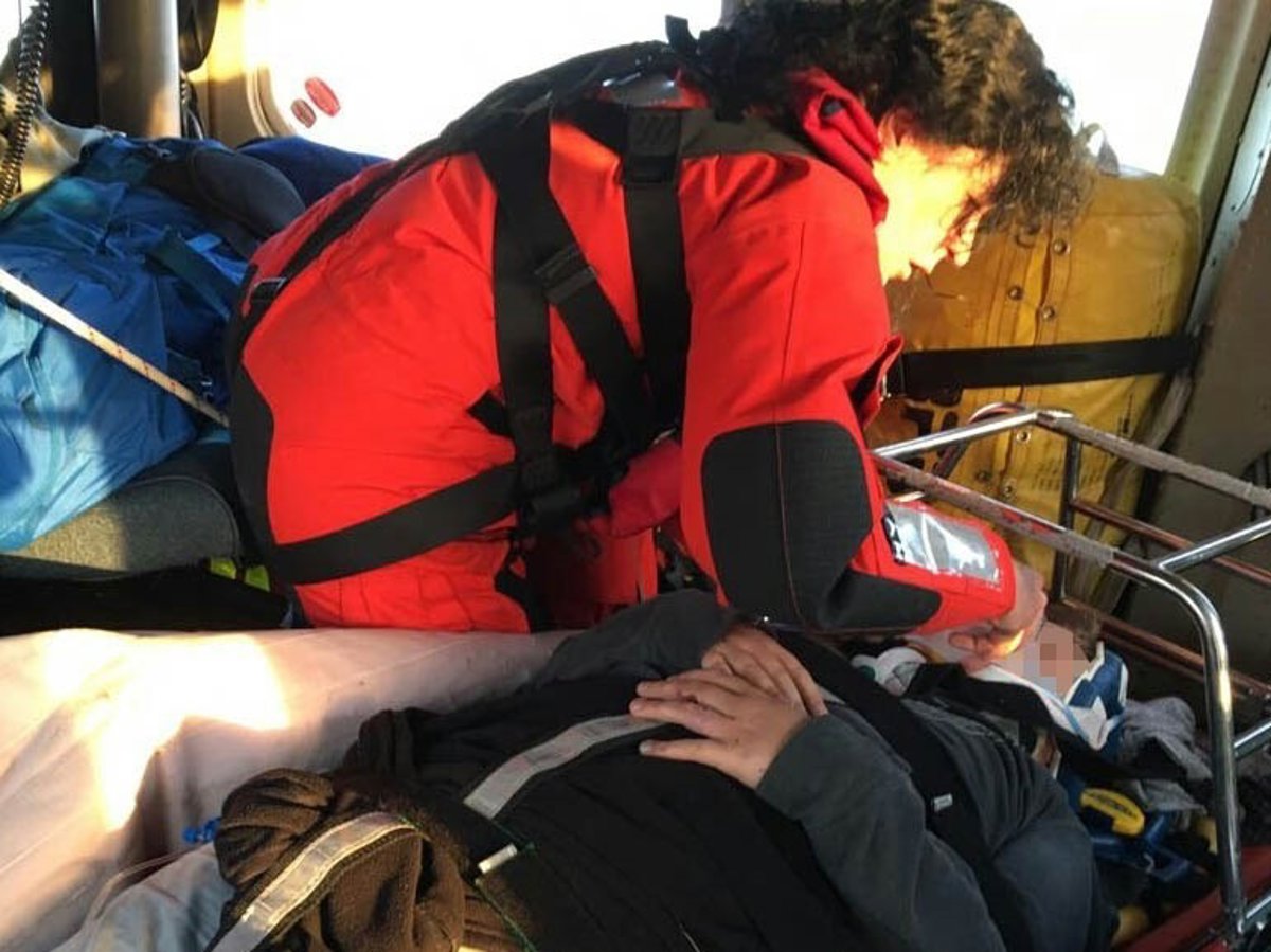 Un técnico de rescate del Gobierno y la médico del equipo han descendido de la aeronave, mediante una operación de grúa, para atender a la víctima. Éstos han realizado una atención de urgencia al herido, le han estabilizado, inmovilizado y asegurado en un tablero espinal, para posteriormente ser transferido a una camilla de rescate, en la que ha sido izado hasta el helicóptero, siguiendo el mismo procedimiento que en el descenso.