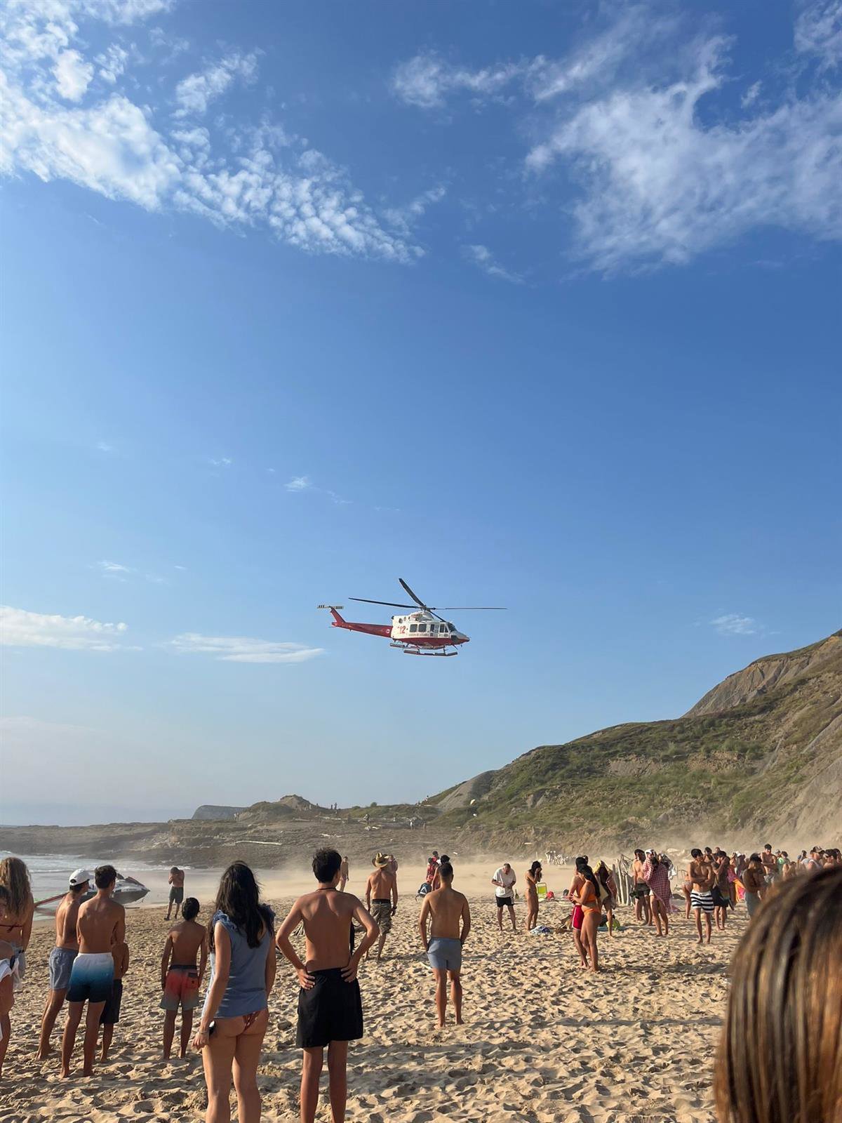 El helicóptero del Gobierno de Cantabria ha efectuado este domingo cuatro rescates en diferentes puntos de la región, uno de ellos de tras personas con dificultades para salir del agua en la playa de Los Caballos en Miengo.