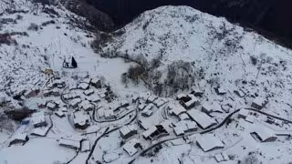 El equipo de intervención del helicóptero del Gobierno de Cantabria ha realizado este lunes un vuelo de reconocimiento sobre Tresviso. La salida ha tenido como objetivo efectuar una valoración de la situación y comprobar el estado del pueblo y su vial de acceso, tras quedar cerrado ayer por la nieve caída en los últimos días.