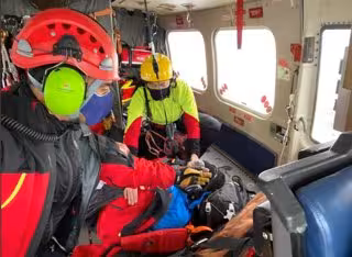 El personal médico del helicóptero realizó la primera evaluación al herido, que presentaba traumatismo dorsal y sacral moderado y una leve hipotermia.