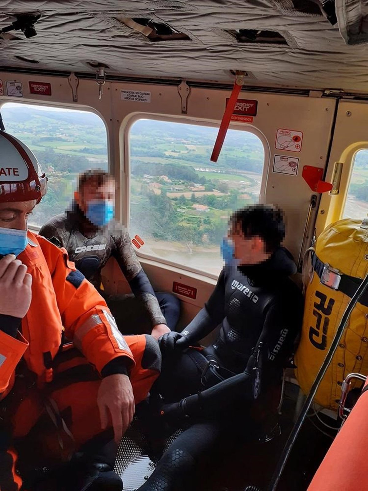 Los dos jóvenes, que presentaban una leve hipotermia, fueron izados al helicóptero mediante operación de grúa.