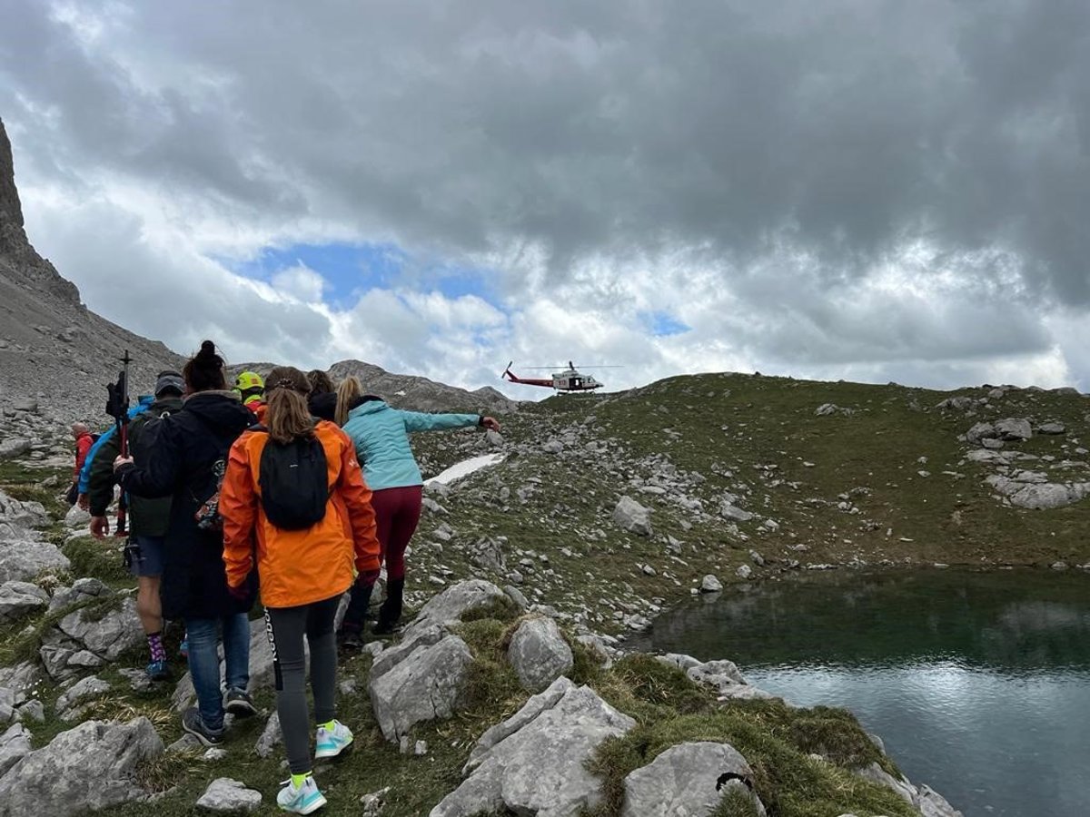 Al llegar al lugar del accidente, en la zona de la Vueltona, en el lago superior de Lloroza, el helicóptero ha tomado tierra y el equipo médico ha atendido a la herida, que presentaba traumatismo craneoencefálico leve, trauma costal y trauma grave en una mano.