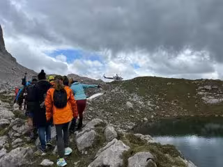 Posteriormente se ha porteado a la víctima unos 200 metros, con ayuda de montañeros que estaban en el lugar, para llevarla a un punto de extracción más seguro.