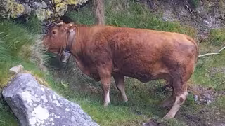 El helicóptero del Gobierno de Cantabria ha rescatado a una vaca, que estaba preñada, y que en la subida a la localidad de Sejo, en Campoo de Suso, se coló en una torca, en concreto la parte trasera del cuerpo de la res, que quedó atrapada y con el vientre aplastado.