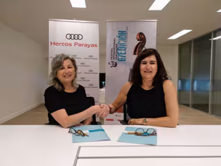 La directora ejecutiva del Festival Internacional de Santander, Valentina Granados, y la gerente de Hercos Parayas-Audi, Natalia de los Arcos, han renovado el convenio de colaboración que ambas entidades mantienen desde 1996. El acuerdo permite que la empresa automovilística colabore, en esta ocasión, en la celebración del ciclo 'Proyecciones y coloquios'.