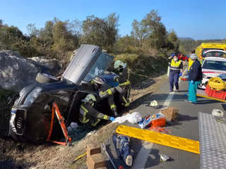 Los efectivos del 112 han aseguraron el vehículo, que permanecía en la cuneta volcado sobre el lateral izquierdo, y excarcelaron a la víctima, que se encontraba atrapada en el interior del habitáculo.