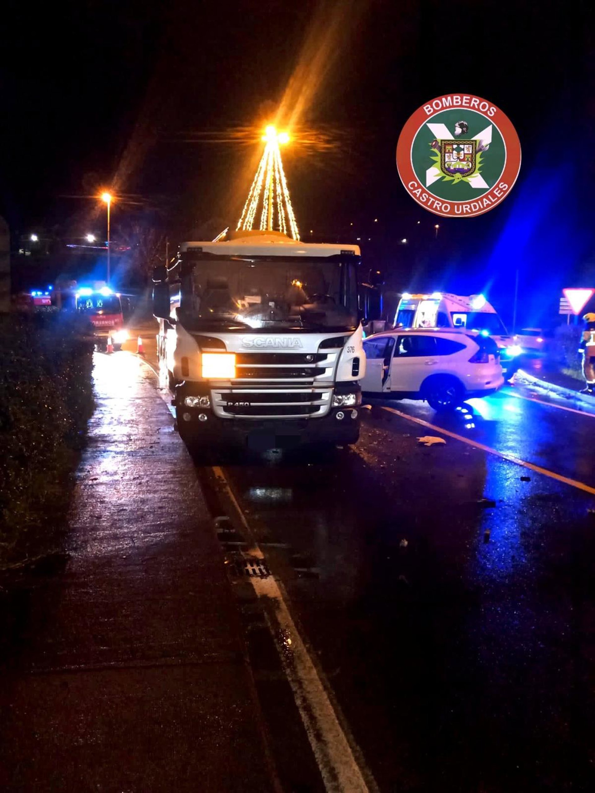 Herida una persona tras un accidente entre un coche y un camión de materias peligrosas en Guriezo - BOMBEROS DE CASTRO URDIALES