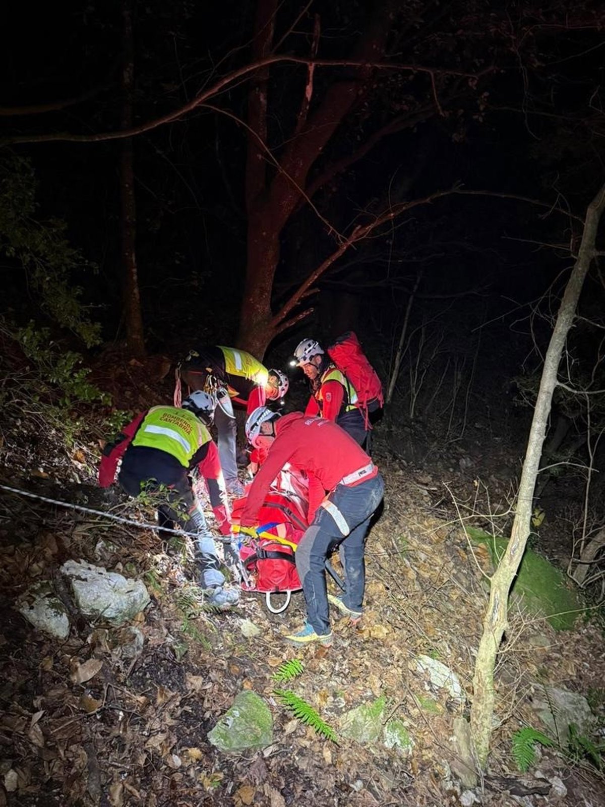 Los bomberos se desplazaron hasta el lugar, estabilizaron al herido y lo portearon en camilla hasta una zona en la que una ambulancia lo trasladó al centro de salud de Potes.