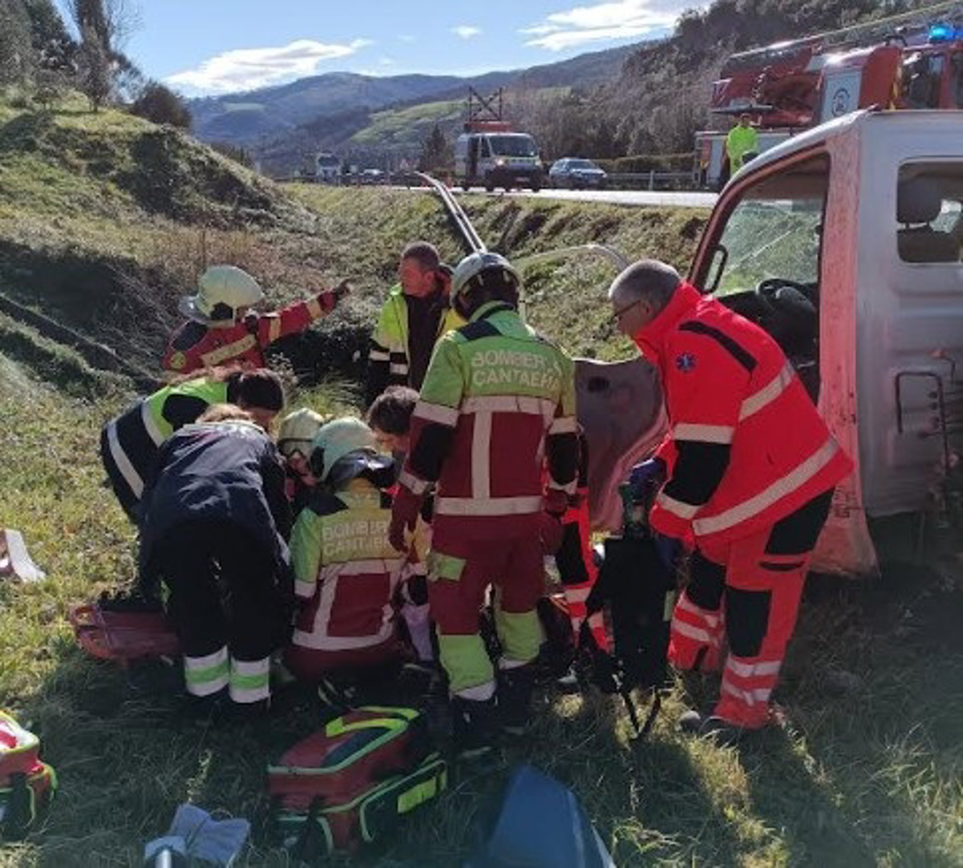 El hombre ha sido trasladado al hospital de Cruces, en Barakaldo, donde se encuentra con pronóstico reservado, tras quedar atrapado en el interior del vehículo, que estaba en una vaguada de hierba junto a la A-8, ha informado el Servicio de Atención a Emergencias del Gobierno de Cantabria.