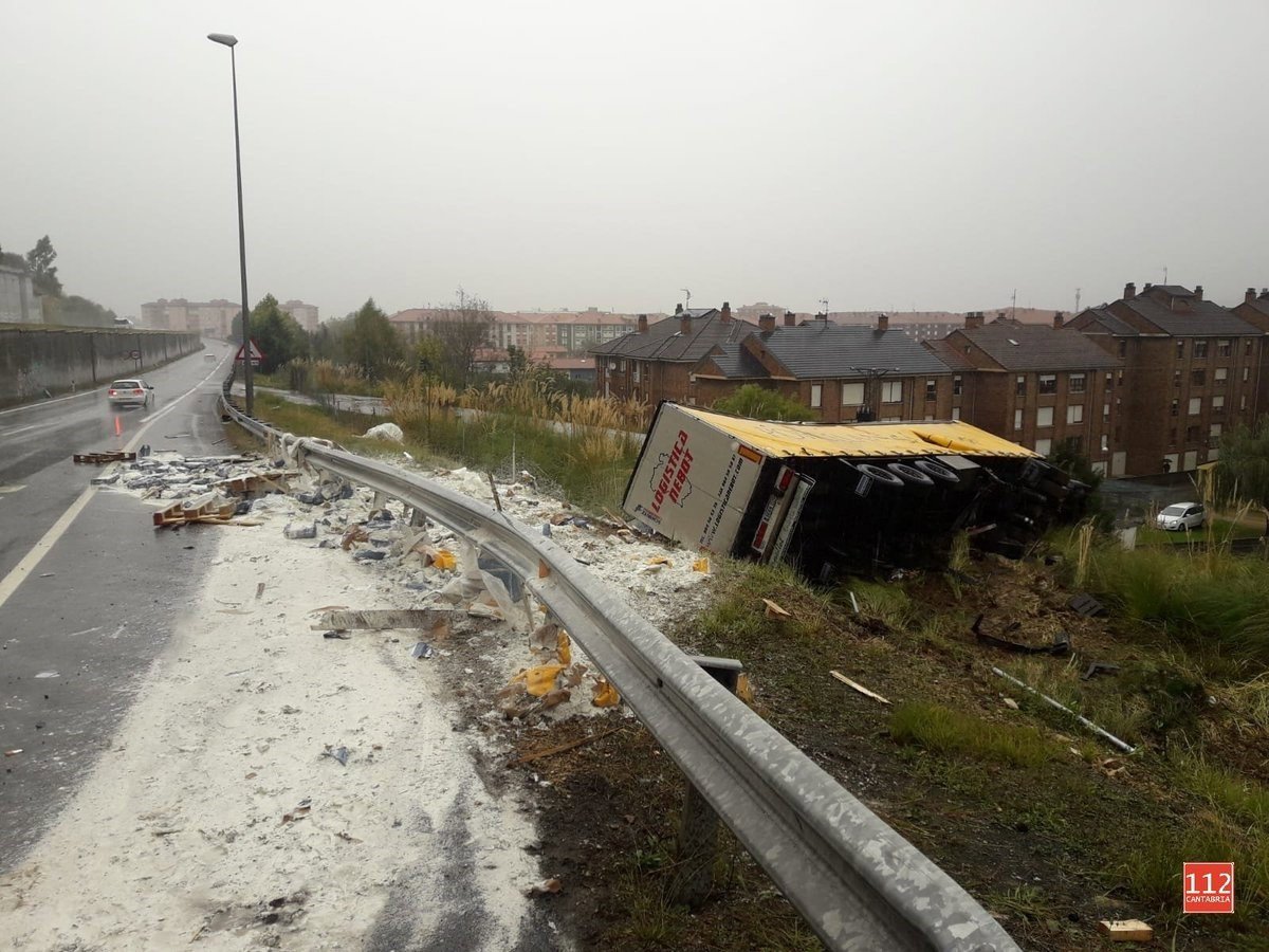 Camión volcado - TWITTER 112 CANTABRIA