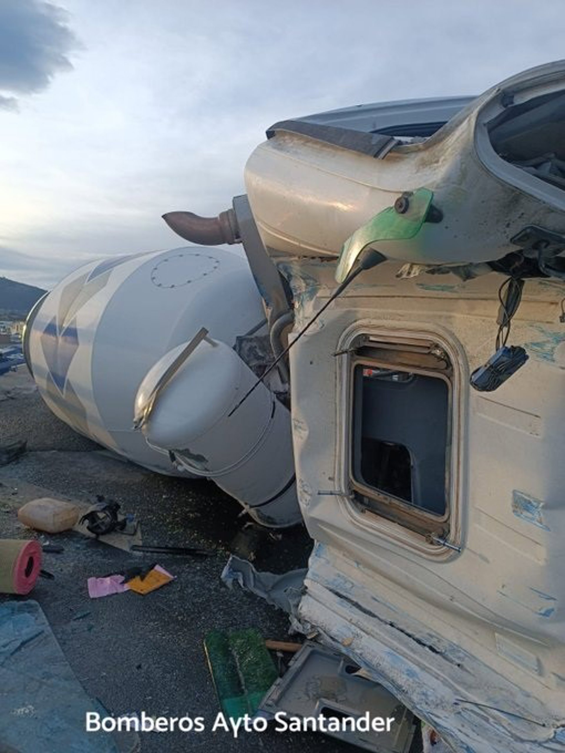 La hormigonera ha volcado lateralmente y el conductor, de 23 años, ha quedado atrapado y ha sido excarcelado por los Bomberos del Ayuntamiento de Santander.