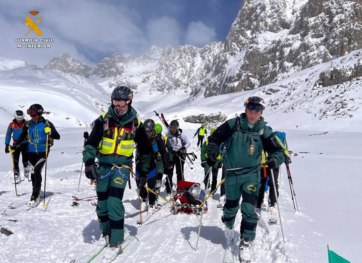 Una vez el esquiador fue estabilizado, se le introdujo en una camilla trineo del GREIM de la Guardia Civil y fue desplazado hasta la estación superior del Teleférico de Fuente Dé.
