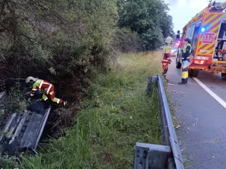 Bomberos ayudan a un ocupante a salir de un vehículo volcado. - 112