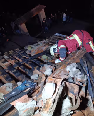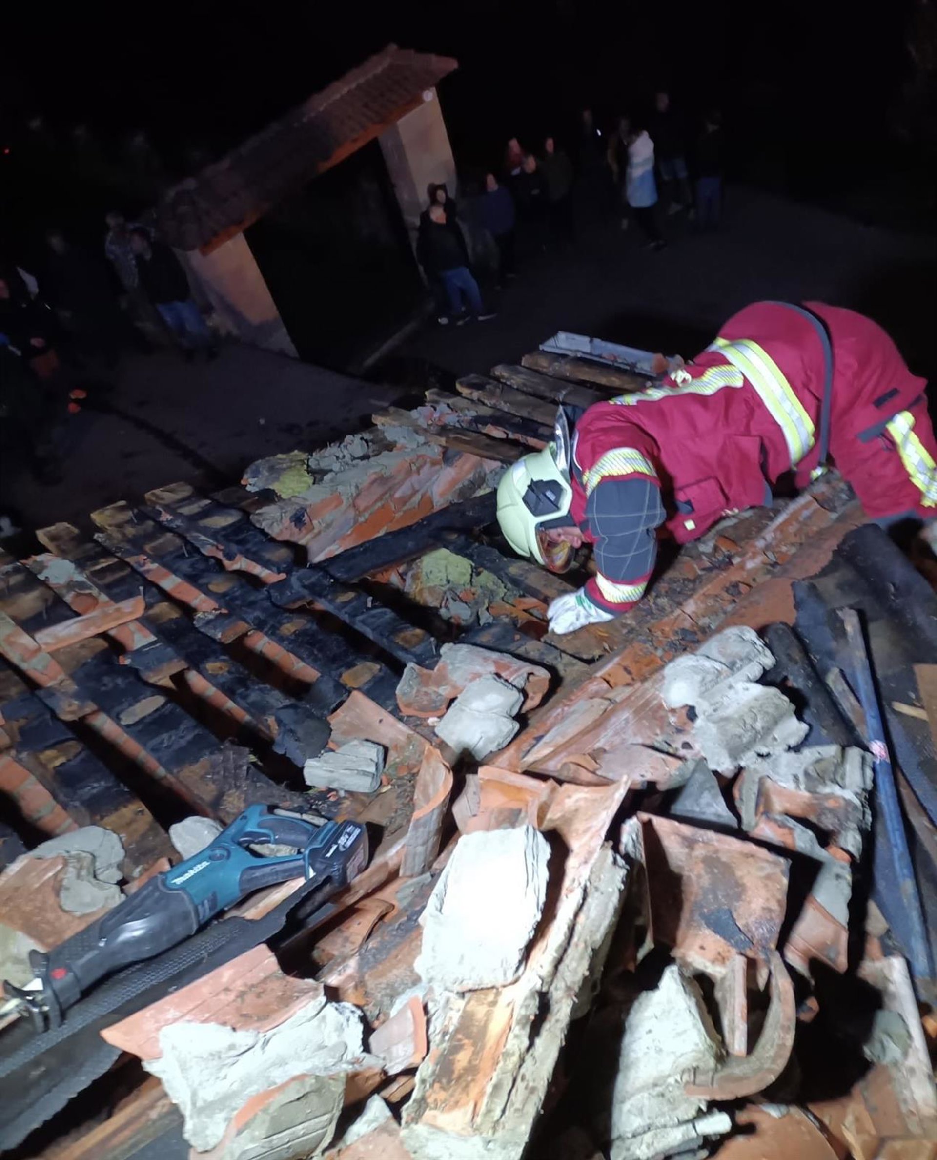 Efectivos del 112 en el tejado del inmueble de Linares, en Peñarrubia, donde se produjo el incendio - 112