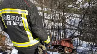 Un tractor se ha salido de la calzada en la localidad de Brez (Camaleño), y ha caído 15 metros por un terraplén hasta impactar con unos árboles, que han servido de freno al descenso. Los bomberos del parque del 112 en Tama han tenido que liberar a dos de sus ocupantes, que han resultado heridos leves.